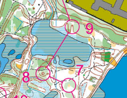 Myśląc o dotarciu do pk nr 9 znów należało zdecydować z której strony obiegać jezioro. Większość biegaczy wybrała wariant lewy. Na prawy zdecydował się Pawlak oraz Wensław, jednak obaj na tym stracili 6 sekund do Parfianowicza. Lewy wariant okazuje się w tym wypadku szybszy i krótszy.