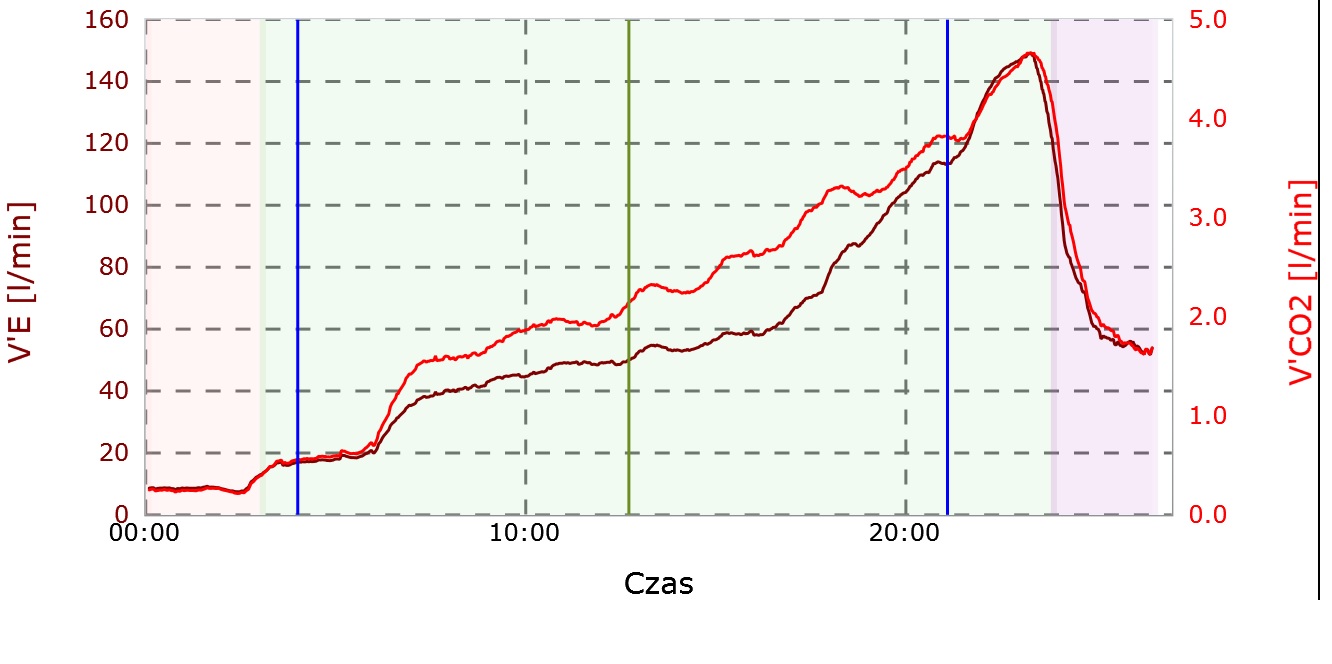 Pisałem wcześniej, że przed rozpoczęciem przygotowań, zbadałem swoje nogi wskroś i wzdłuż pod kątem kontuzji, słabości i braków. Nowa wiedza pozwoliła mi wyeliminować wcześniejsze błędy i po kilku dniach pracy z mięśniami, mogłem w spokoju zająć się treningiem. Dzięki przychylności mojej uczelni, udało mi się załatwić serię 5 badań wydolnościowych rozłożonych na cały sezon. I tak pierwsze badanie wykonałem tuż przed pierwszym obozem wprowadzającym. Wyniki wyszły całkiem całkiem, ale przede wszystkim pozwoliły określić aktualny stan wytrenowania, dzięki czemu nie groziło mi za szybkie czy też za wolne bieganie.