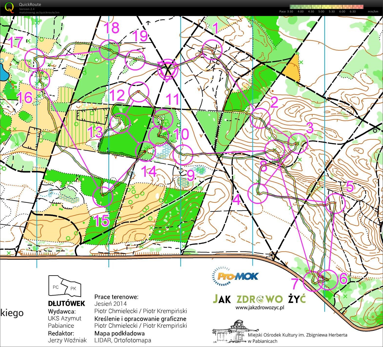 Kilka dni po obozie pojechałem do rodzinnego domu, gdzie treningowo skupiłem się na bieganiu z mapą. Przez 4 dni spędziłem kilka godzin na nowej mapie – Dłutówek, wykonując przeróżne treningi. To co cieszyło mnie najbardziej, to fakt, że biegałem z przyjemnością i łatwością, a przede wszystkim bez bólu. Nawet po 2 godzinach biegania w lesie nie zauważałem spadku mocy.