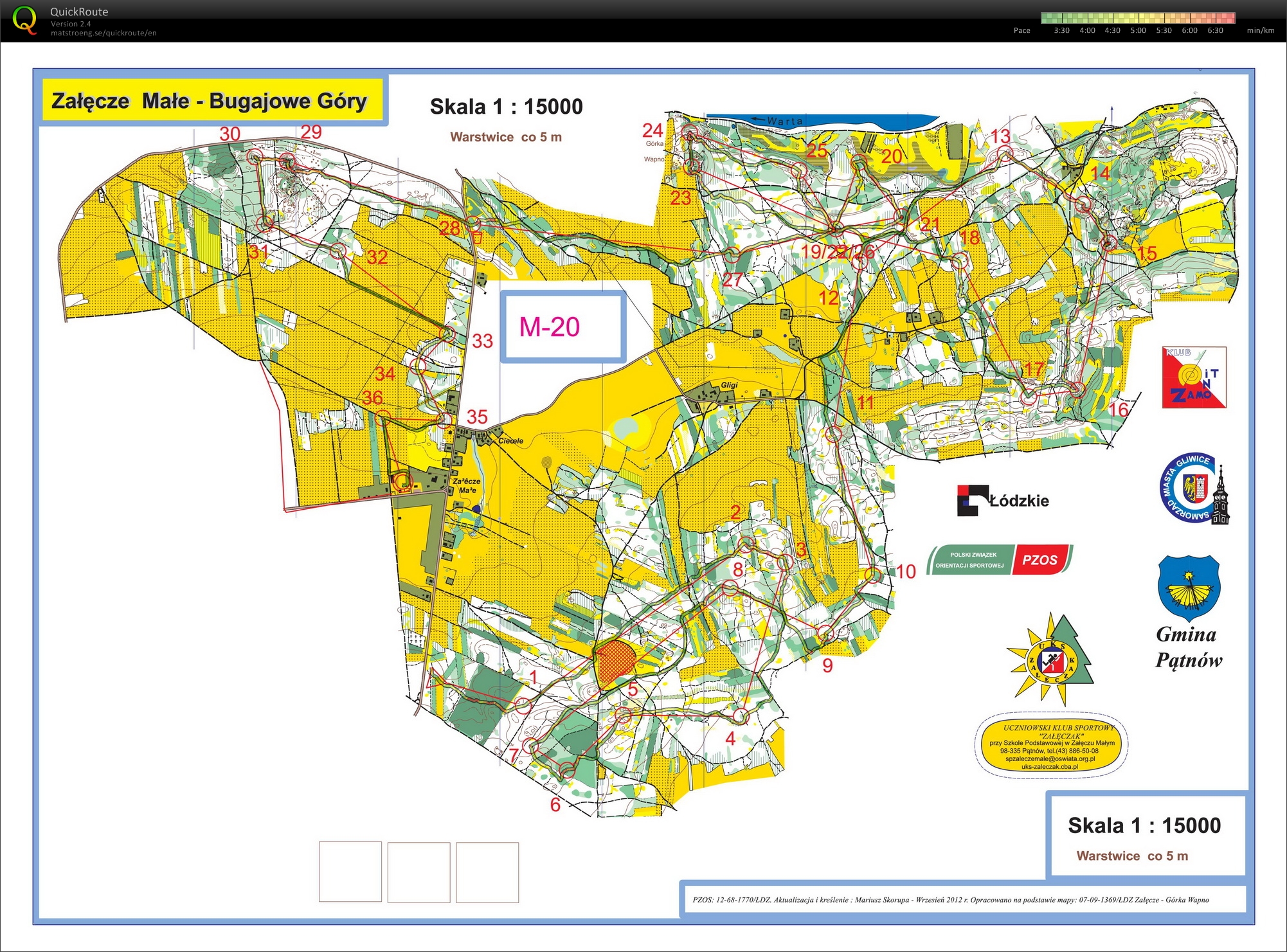Początek w moim wykonaniu był bardzo pewny, bez szaleństwa, ale i bez błędów. 4 pkt wydawał mi się źle ustawiony, ale może to tylko złudzenie. Małe błędy zaczęły się, jak zwykle u mnie, kiedy doganiałem swoich rywali. I tak zły odbieg na 7, gdzie za szybko sprawdziłem kompas(coś od wyjazdu do Finlandii, czuję jakby działał wolniej…), złe wejście na 9, problemy z odczytaniem mapy na 14 i 15. Po tych kilku małych błędach postanowiłem do końca trasy skoncentrować się na tyle, na ile byłem w stanie tego dnia, co poskutkowało bardzo dobrym biegiem z wyłączeniem wejścia na 23 i 29pkt. Całą, 20 kilometrową trasę pokonałem w 101’34’’, co dało mi średnią 5’03/km. Garmin pokazał średnią 4’25/km, co podczas biegu z mapą nie zdarza mi się często.